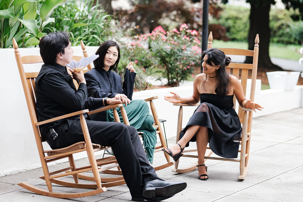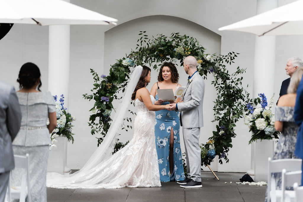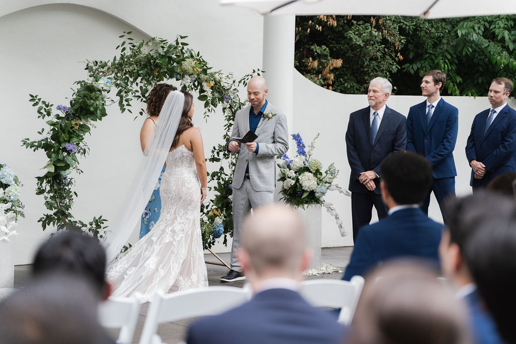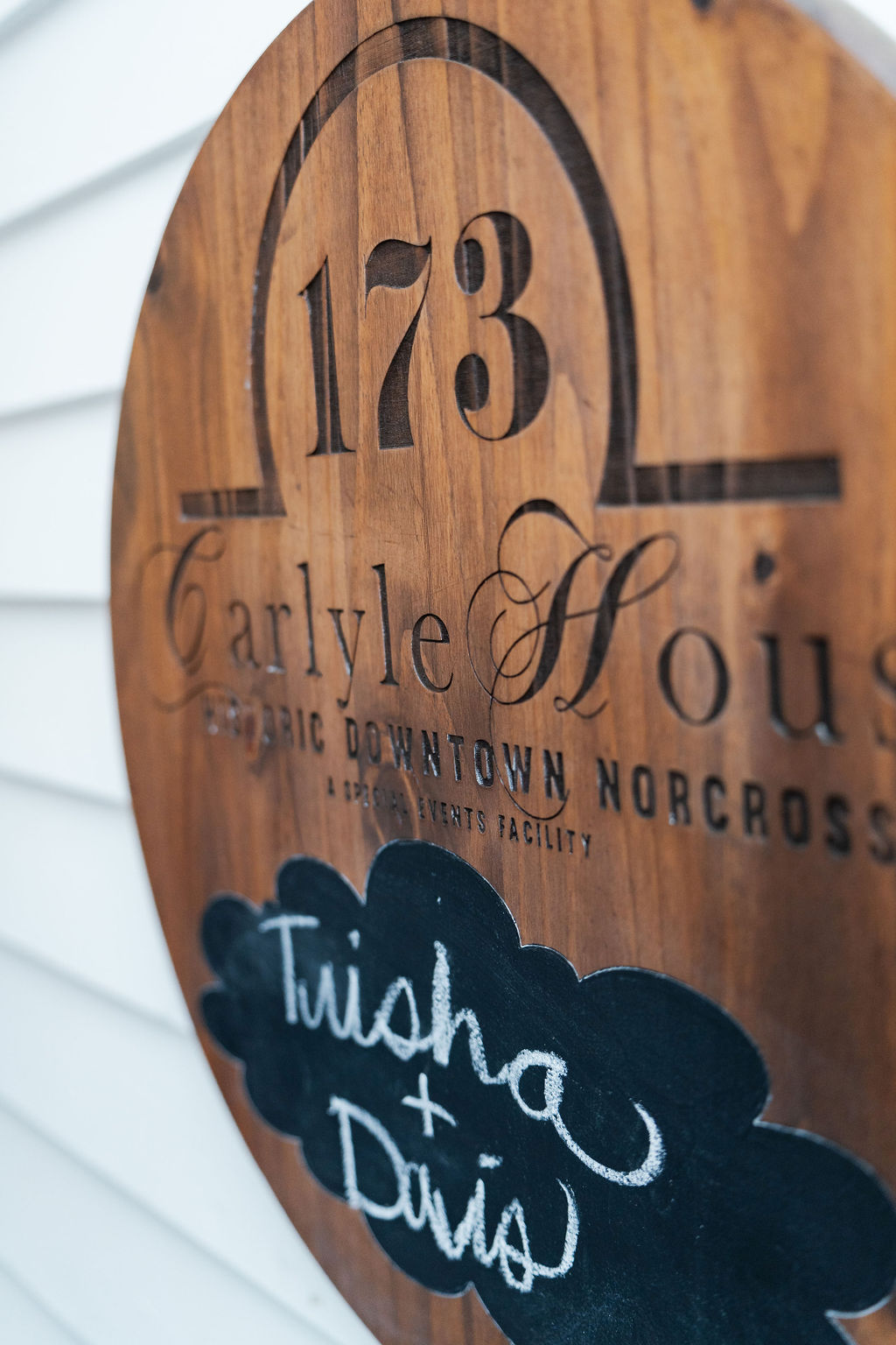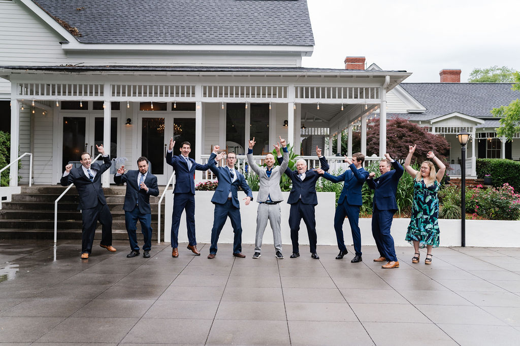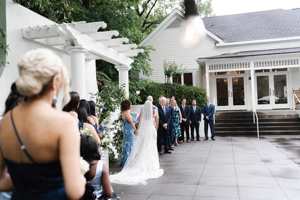 What an exciting weekend here in historic Norcross at the 173 Carlyle House. We hosted Davis and Trisha’s Wedding ceremony and reception! It was a perfect day after the rain moved out for a ceremony outside. The raindrops left a glistening sheen on the leaves and flowers. Everyone loved the outside ceremony and felt very comfortable on the terrace. The adorable umbrellas made a really cute pop also to an already beautiful setup.