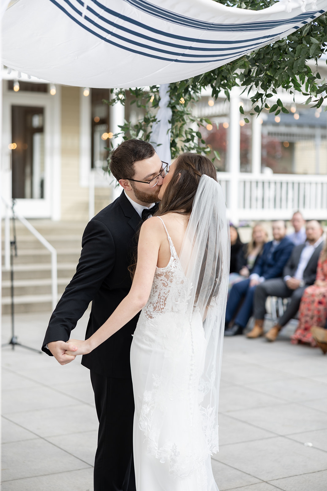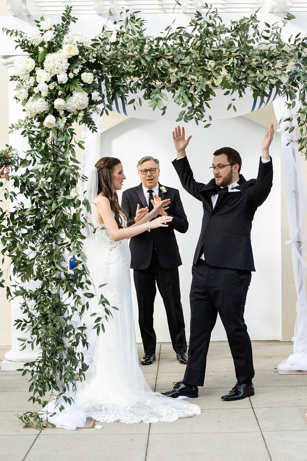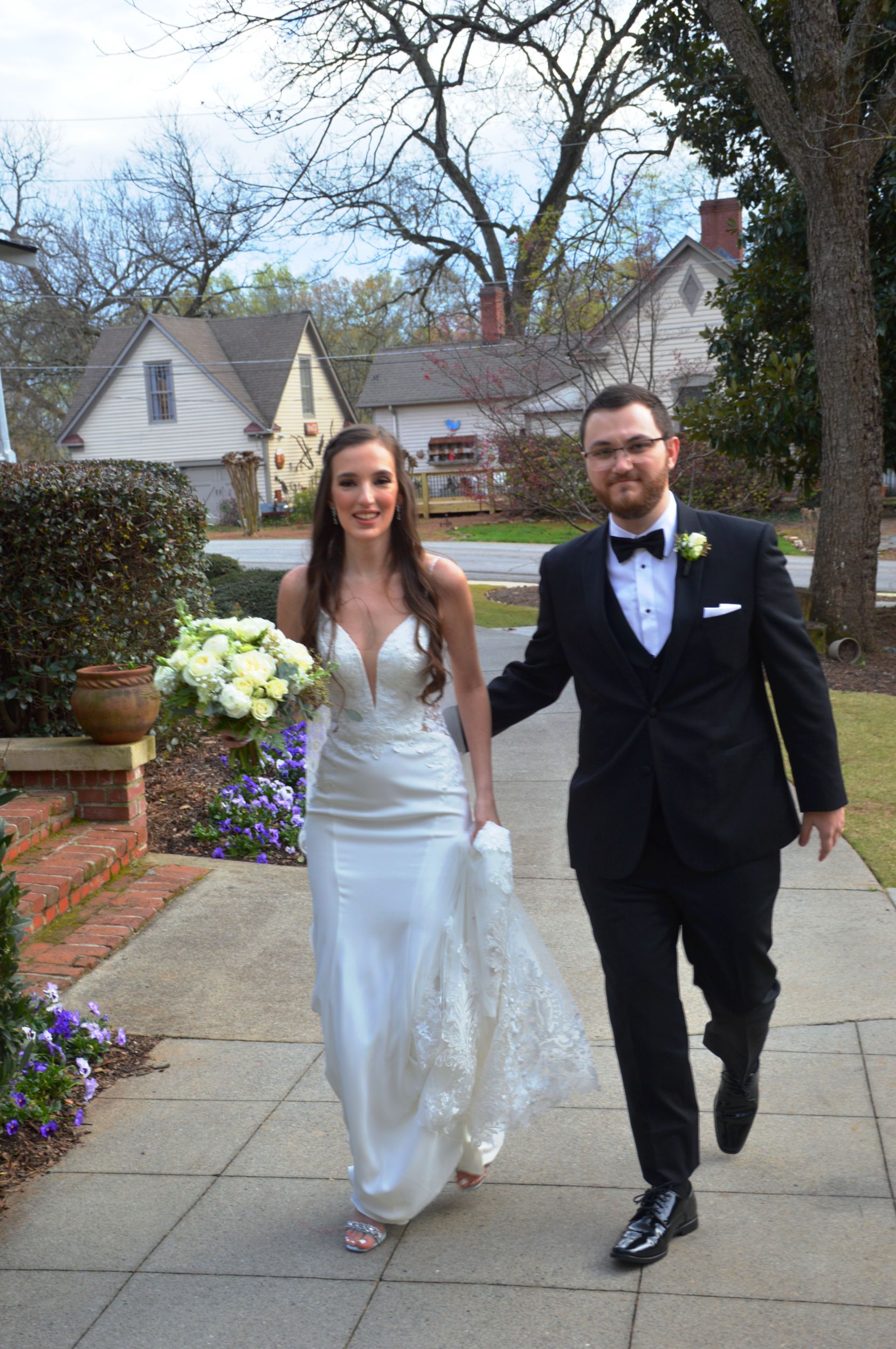 Erin and Michael’s Wedding ceremony was outside on the terrace and beautiful. The weather, flowers, and decor were just perfect. We just love our couples so much. We have the honor of working with THE BEST couples on the planet, I’m convinced. Seriously… Erin and Michael are some of the kindest, most genuine, and most loving people on Earth. It was a joy to have hosted their wedding ceremony and reception and to have had such an amazing opportunity to work with them! Alexander and Zdena did a great job as their coordinators. Everyone told us how beautiful the 173 Carlyle House was and how charming historic Norcross was too. The yummy food they choose was a huge added bonus!