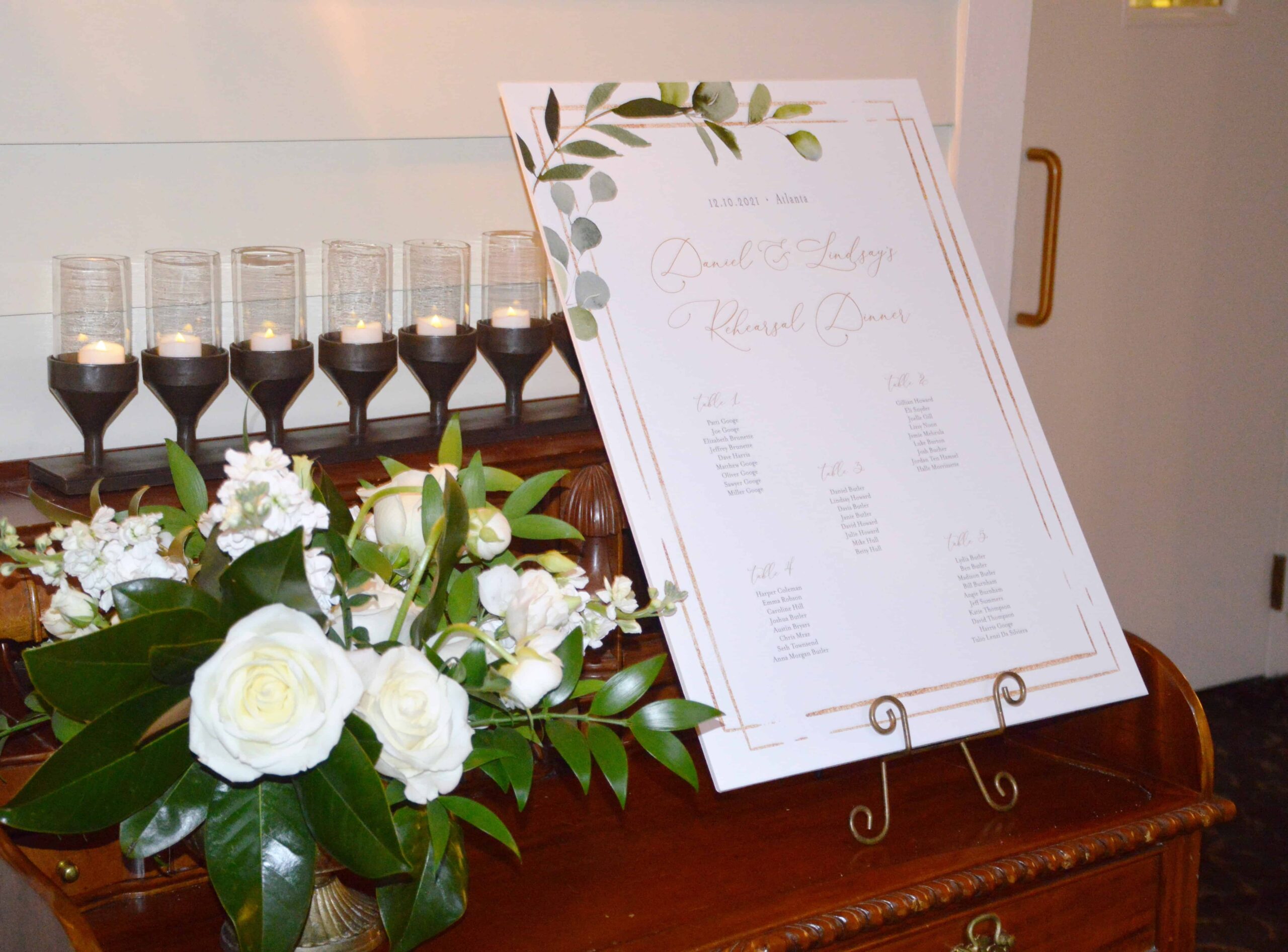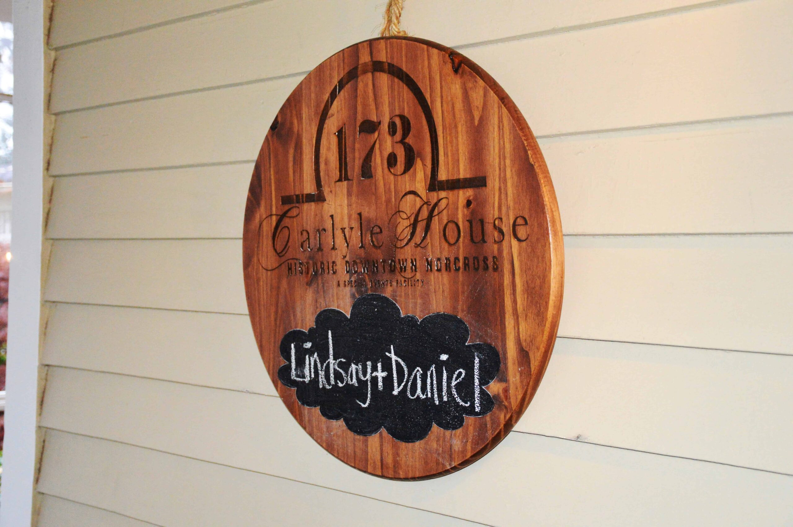 We loved hosting this beautiful couple’s whole wedding weekend here at the 173 Carlyle House in historic Norcross. Friday night we did the Lindsay and Daniel rehearsal dinner, welcome party, and Saturday night we hosted their wedding reception after their ceremony at Perimeter Church.