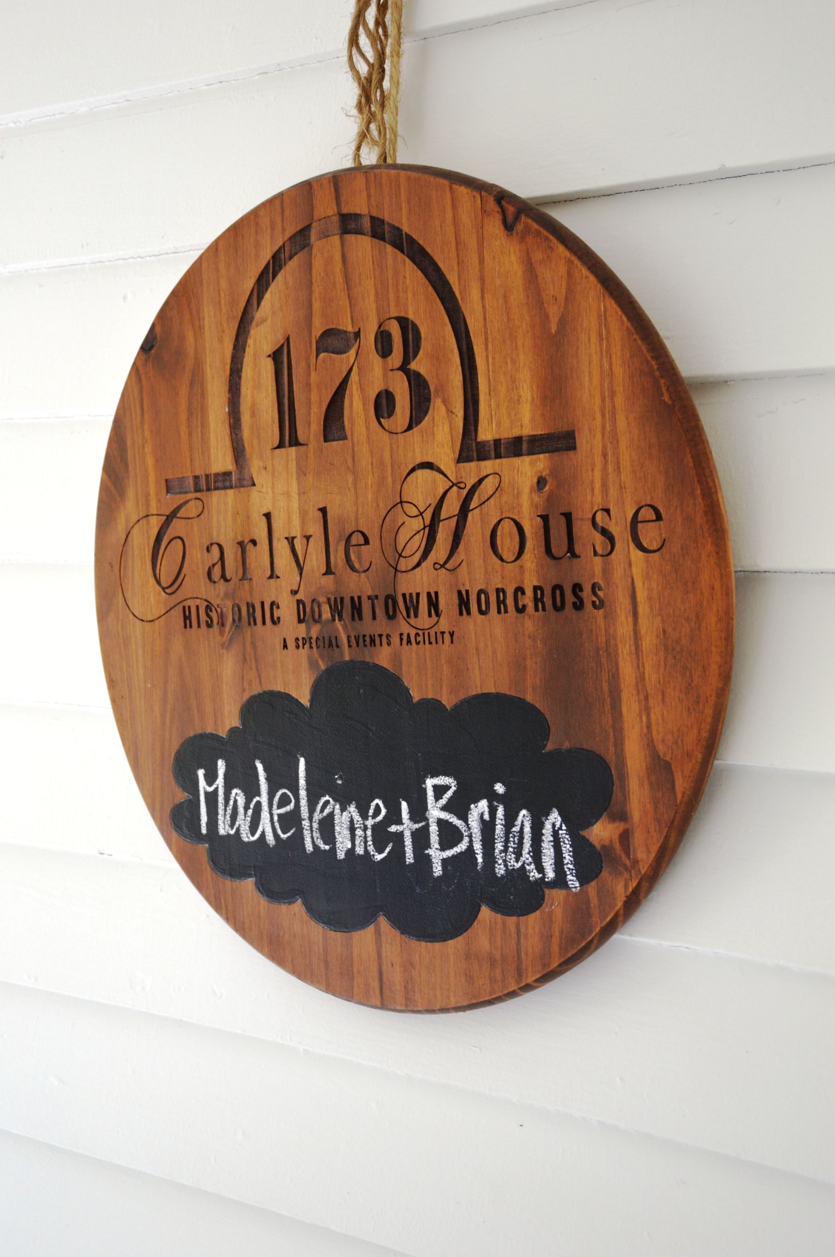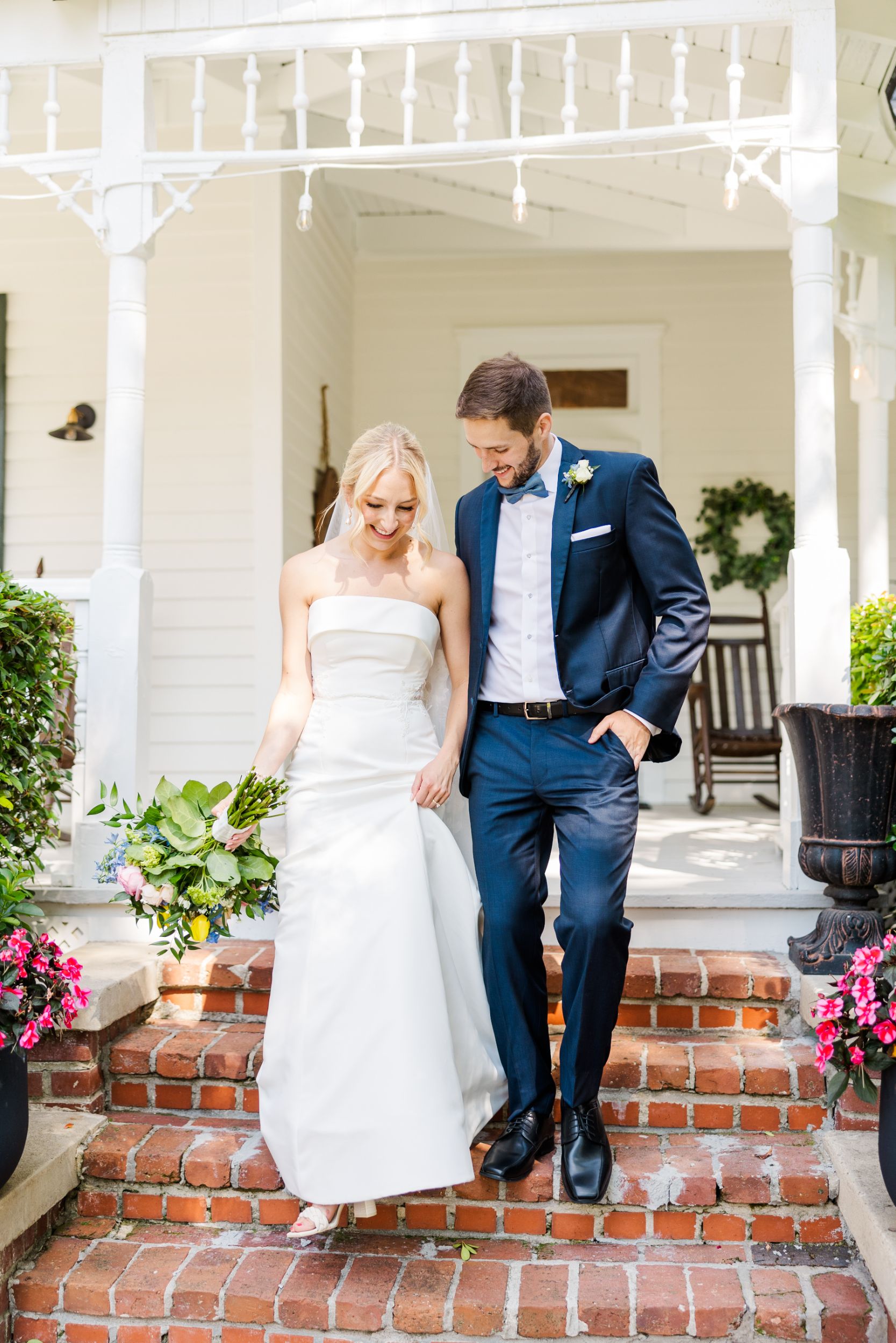 Madeleine and Brian’s wedding reception at the 173 Carlyle House was just beautiful. It really was a perfect day there were so many flowers in bloom and everything was super green and colorful. After the ceremony at the local Catholic Church, Saint Benedicts, everyone headed to historic Norcross for appetizers and drinks at the 173 Carlyle House. They loved all the hand-passed appetizers. For sure the coconut fried shrimp was the favorite.