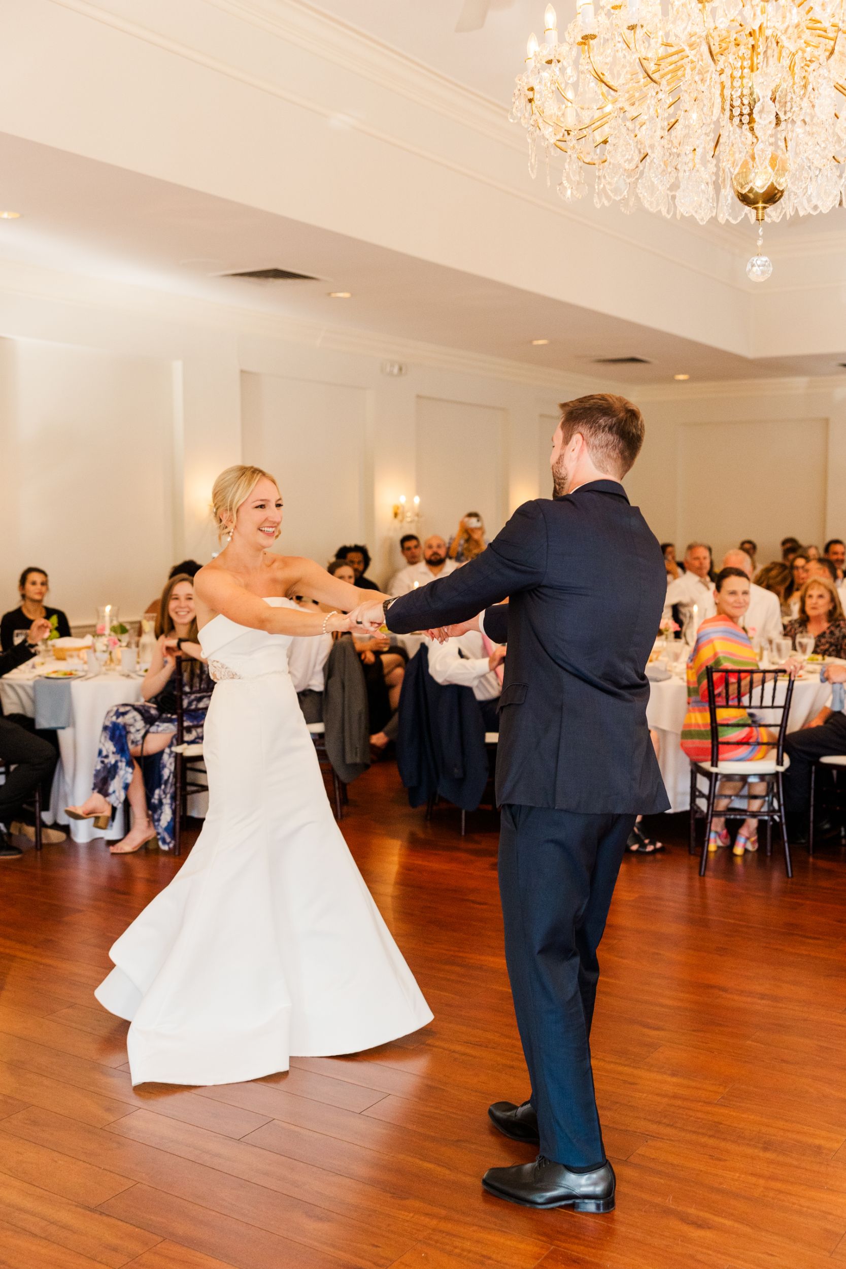 After cocktail hour the wedding guests moved to the ballroom for a seated dinner. Everyone LOVED the food! We heard over and over it was the best wedding food they had ever had. We also got lots of compliments about the bartenders and wait staff! We do have the BEST staff. The bride and groom had great taste when it came to the food selection, decor, entrainment, beverages, and dessert. Everyone was super full and happy! Make sure to look at all the amazing pictures from Christy Hyde Photography.