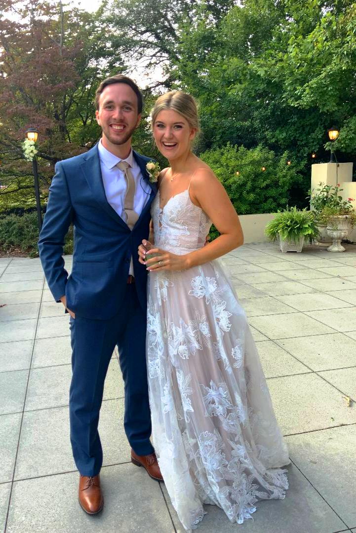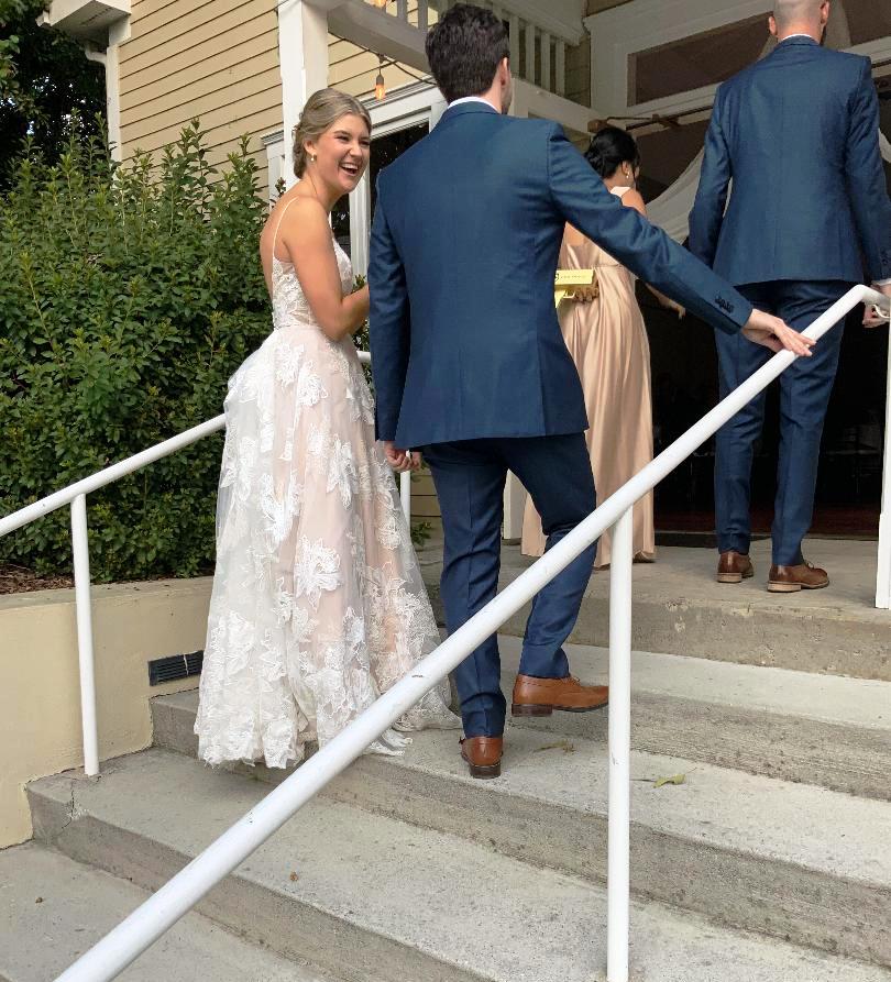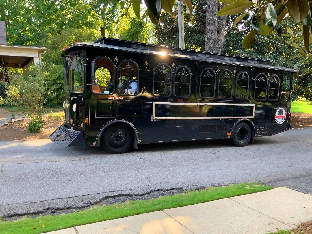 Sarah and Luke’s Wedding ceremony was at Mary Our Queen Catholic Church in Norcross. After that, the wedding reception was here at the 173 Carlyle House and it was just perfect! They have the kindest hearts and are just so sweet. You could tell how much they were loved by their friends and family. They had a great time riding over on the trolley from the church to the wedding venue.