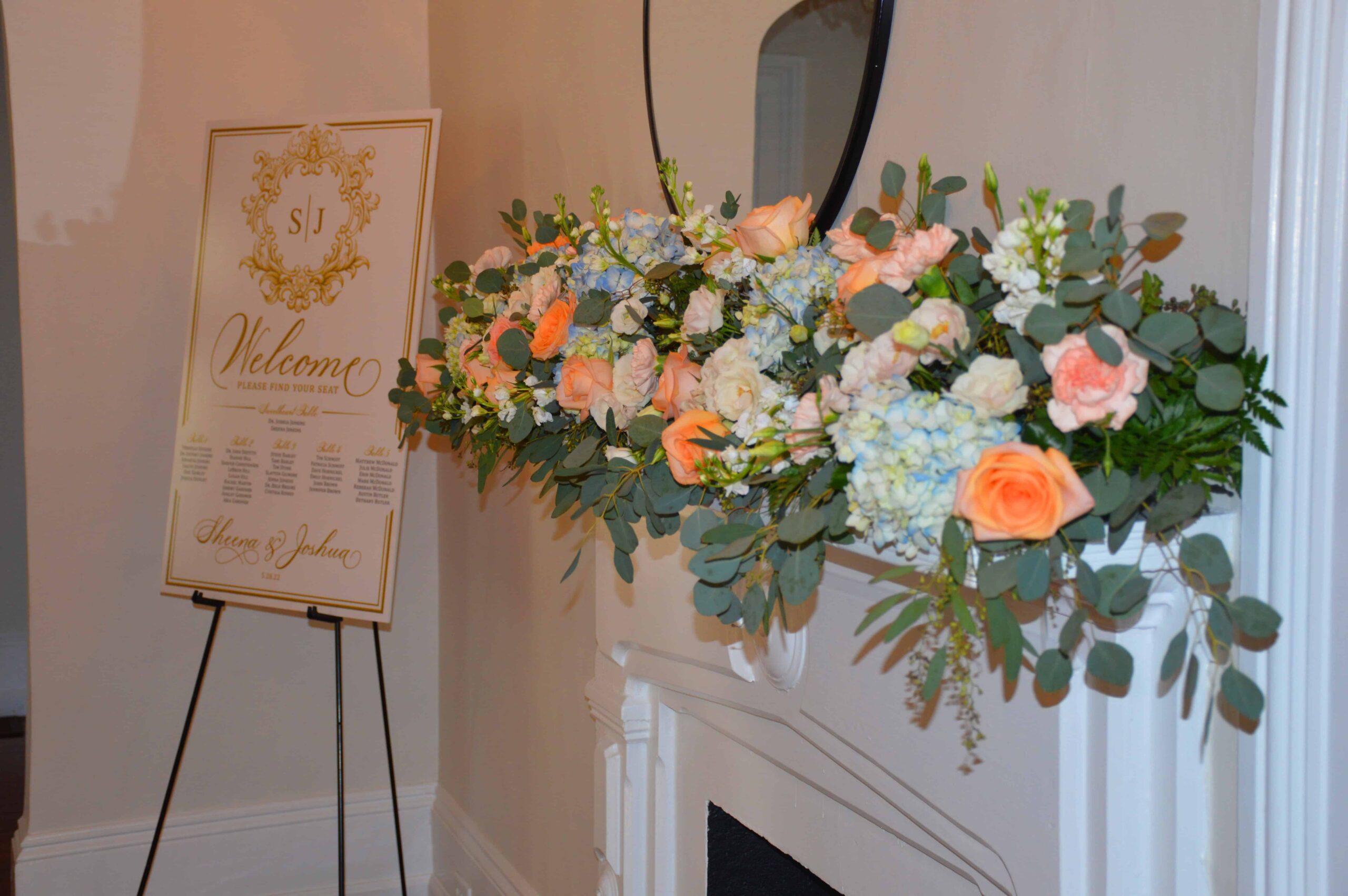 Sheena and Joshua’s Wedding was at St. Brigid Catholic Church, and immediately following they had their wedding reception at the 173 Carlyle House. It was so much fun. We loved the signing frame with their great pictures, the color pallet, the flowers, the wedding cake, the favors, the chargers really everything about this wedding was just perfect!