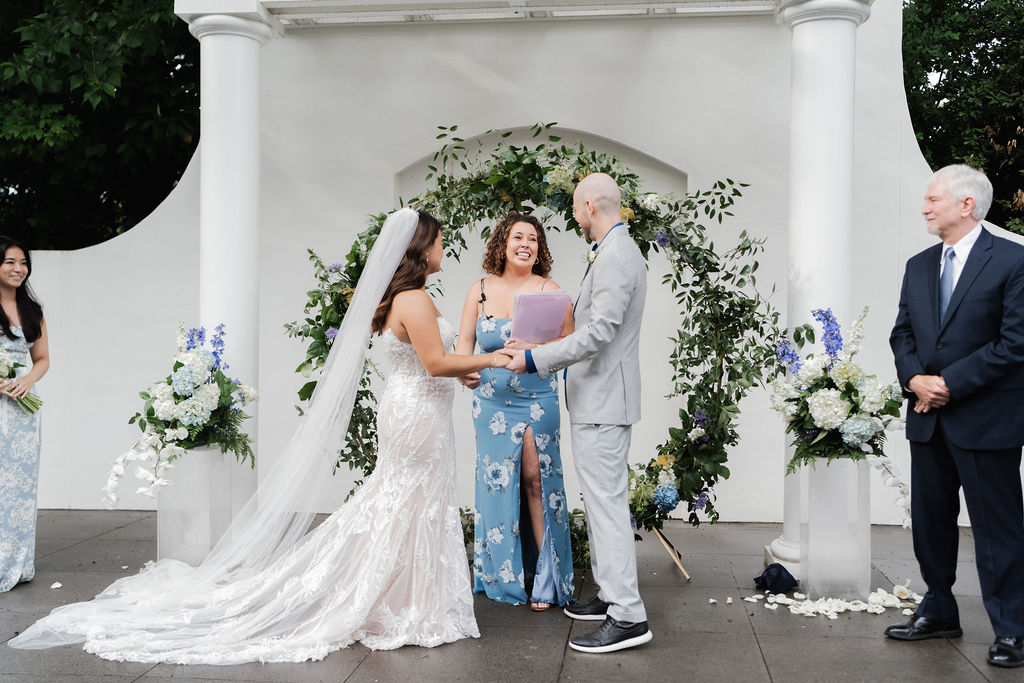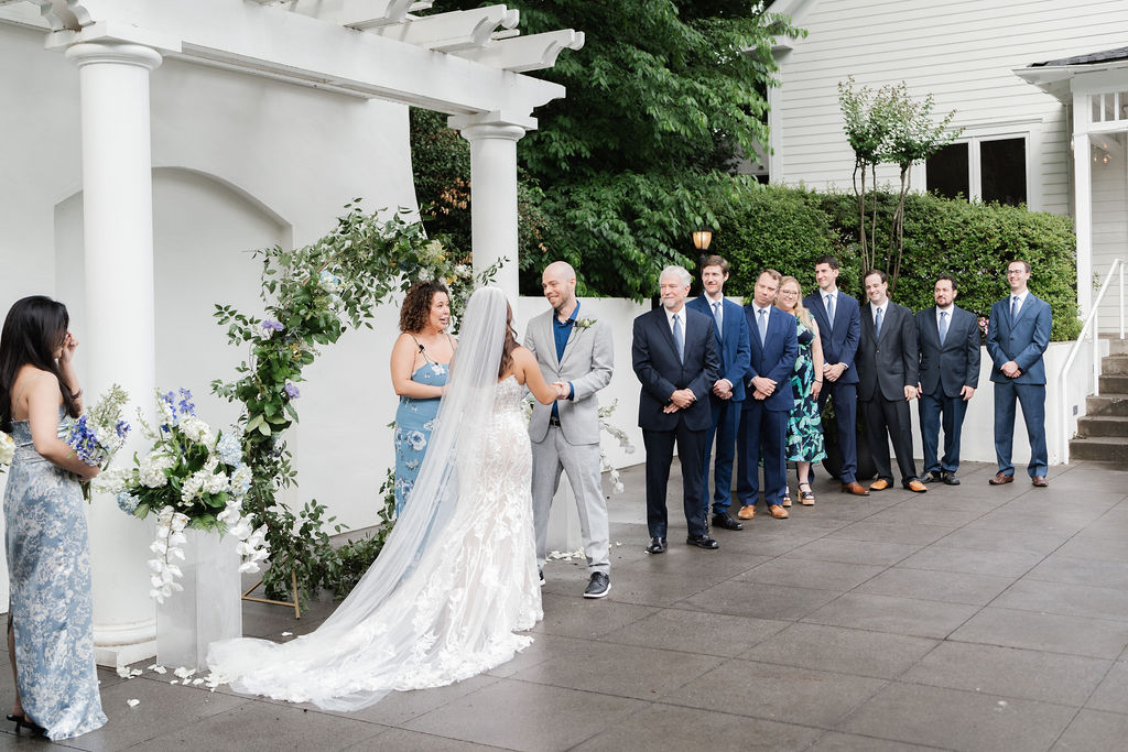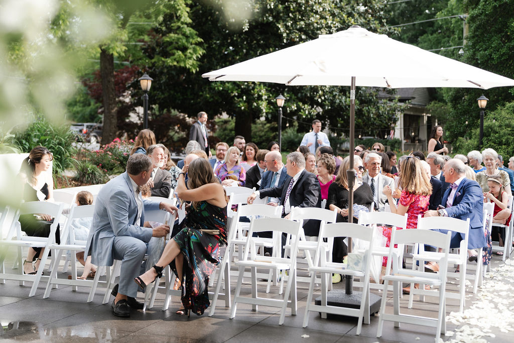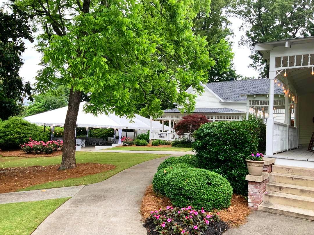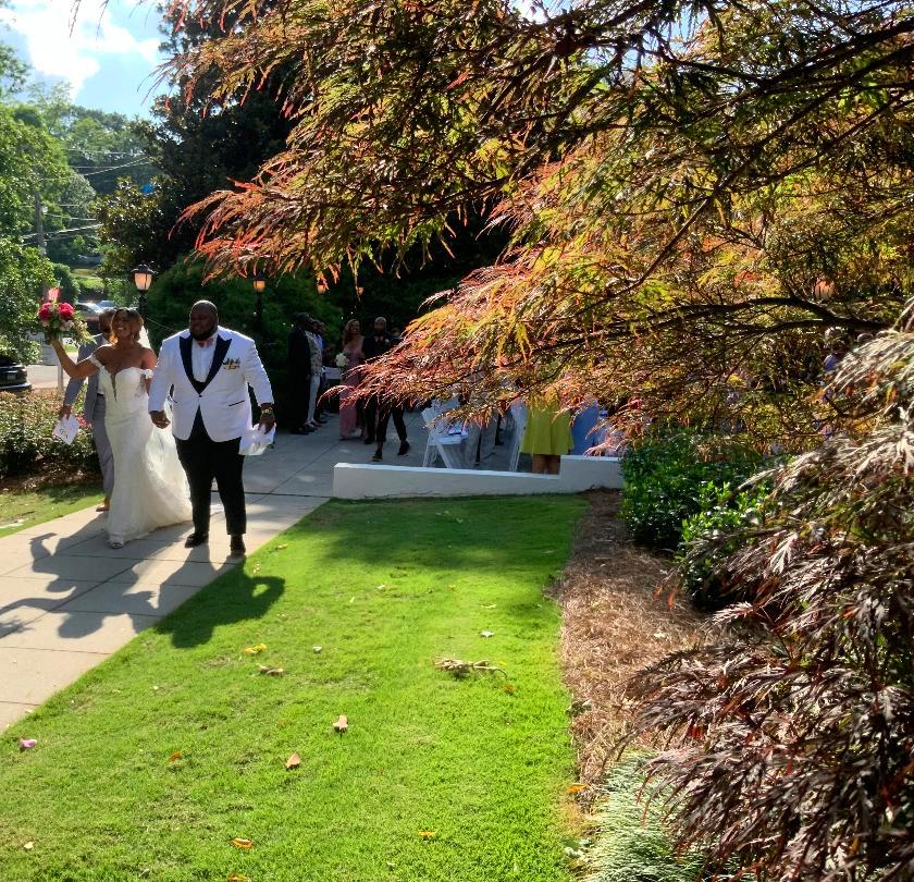 What an exciting weekend here in historic Norcross at the 173 Carlyle House for Alexis and Darrius’s Wedding ceremony and reception. A big wedding in Georgia is always a good idea but May is such a pretty month.! The outdoor terrace was the perfect spot for their 270 wedding guests’ ceremony. They were all so fun and just so HAPPY to be celebrating! The bride looked amazing and we all loved her beautiful dress.