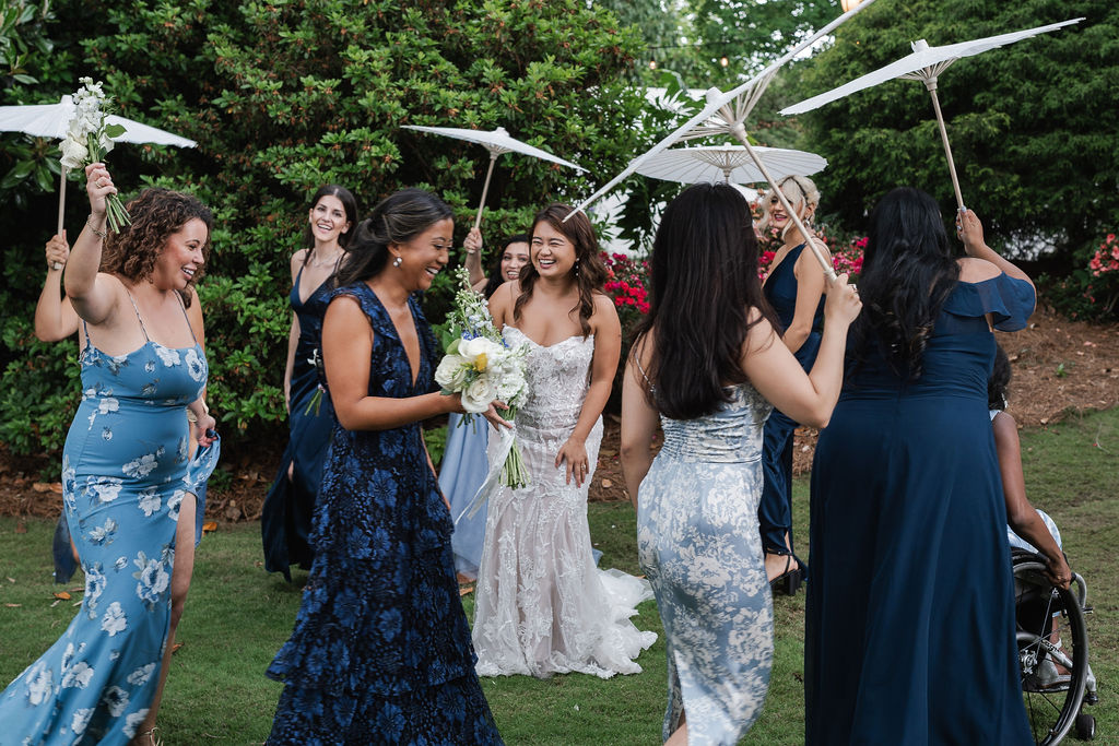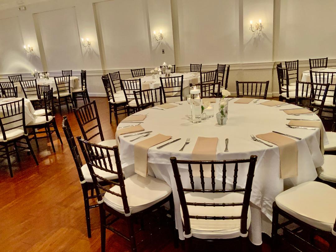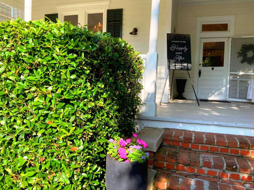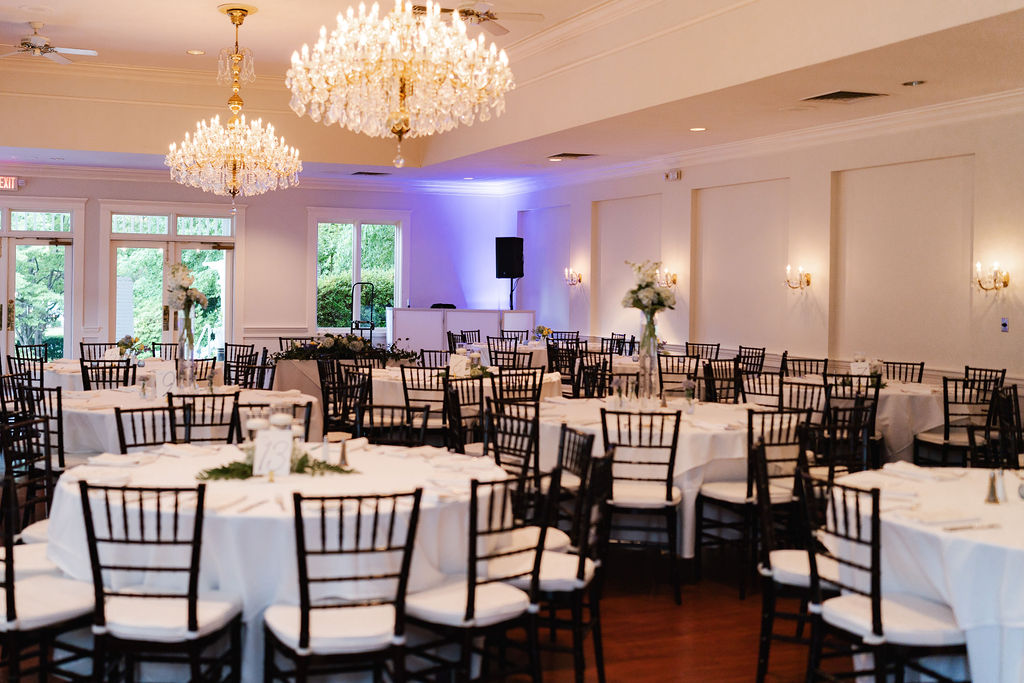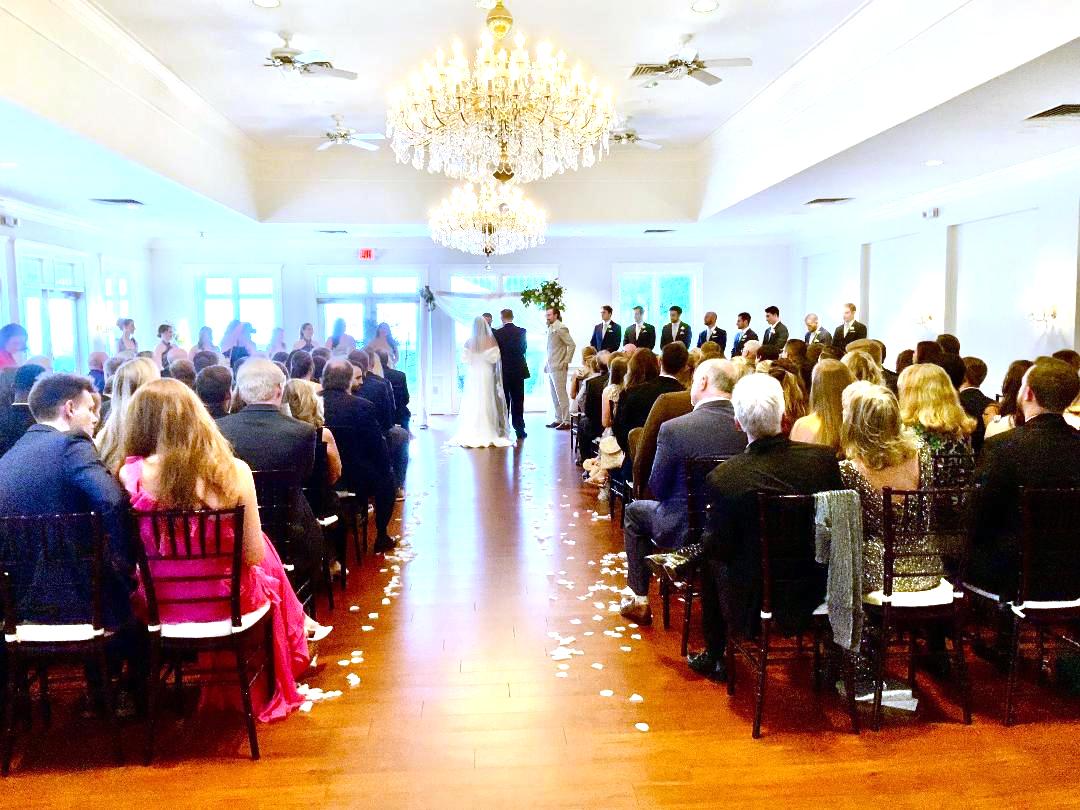 All the wedding guests loved the cocktail hour in the 1800s part of the house with overflow outside rocking on the front porch and on the terrace before the ballroom was opened for dinner. The guests always like to look at the old windows, wood trim, chandeliers, hardwood floors, high ceilings, and old fireplaces. They were super excited about the seated dinner everyone loved the chicken picatta. We loved the color scheme it was a perfect spring wedding. Wishing you many, many years of happiness together.