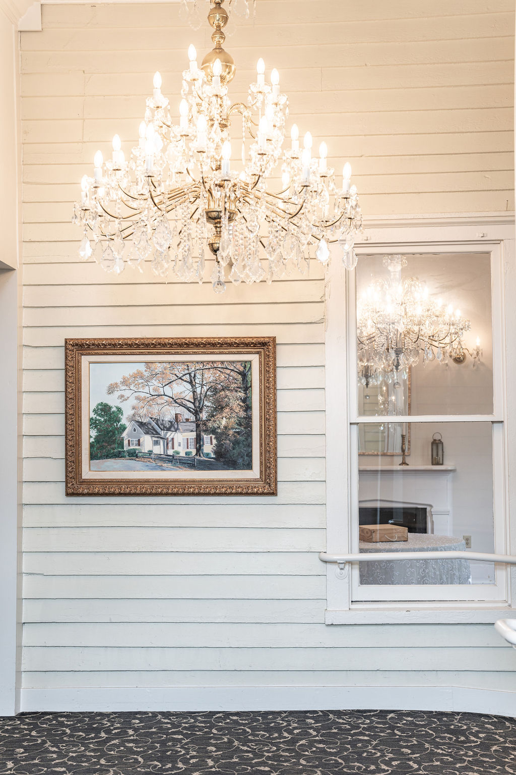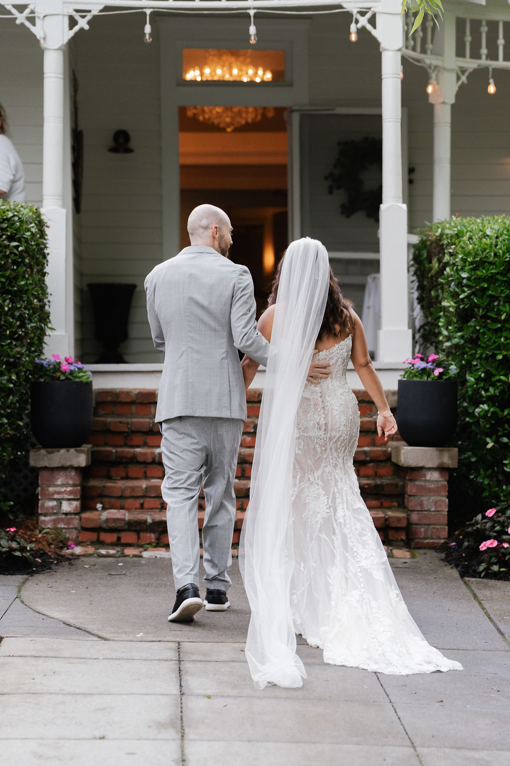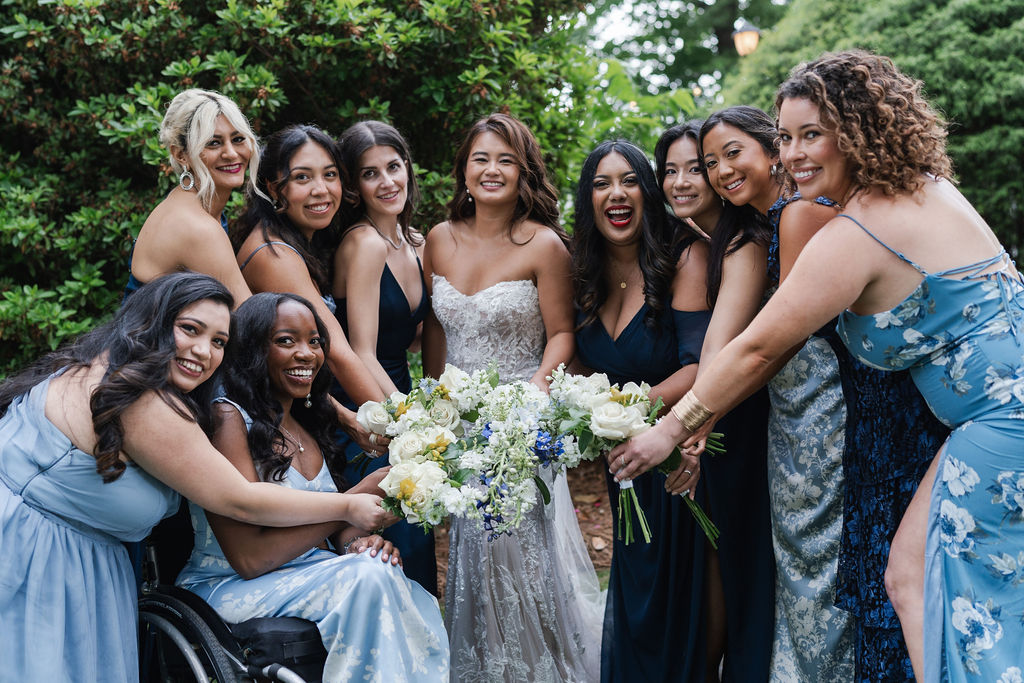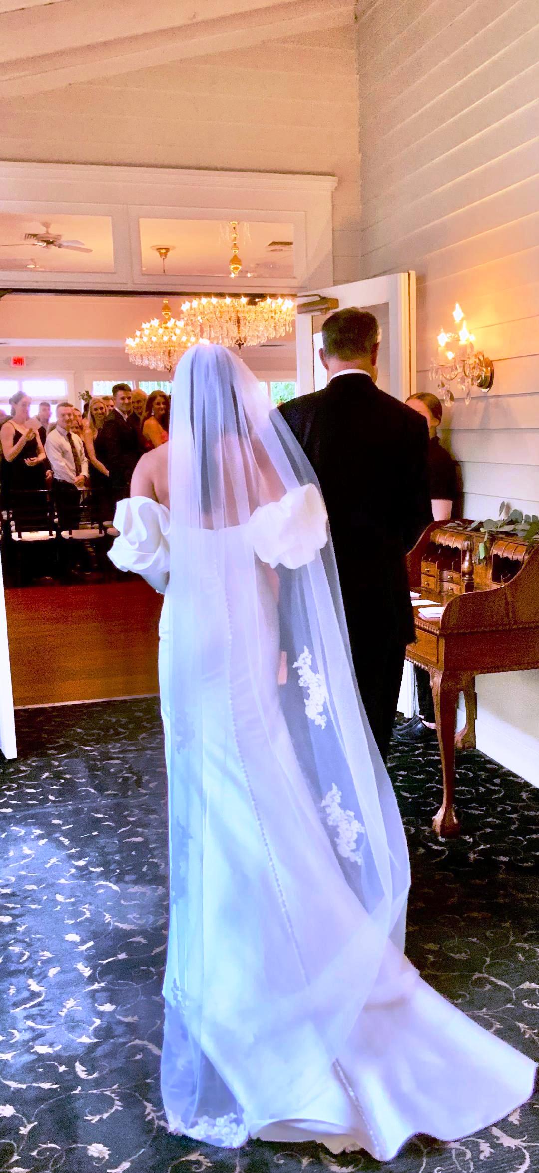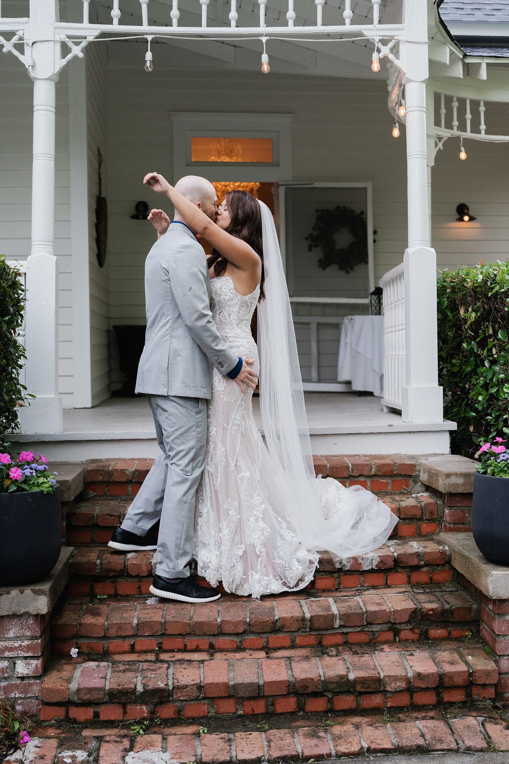 All the wedding guests loved the cocktail hour in the 1800s part of the house with overflow outside rocking on the front porch and on the terrace before the ballroom was opened for dinner. The guests always like to look at the old windows, wood trim, chandeliers, hardwood floors, high ceilings, and old fireplaces. They were super excited about the seated dinner everyone loved the chicken picatta. We loved the color scheme it was a perfect spring wedding. Wishing you many, many years of happiness together.