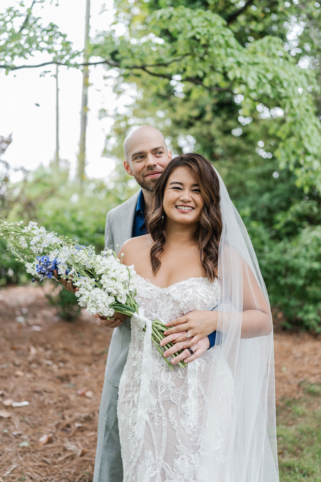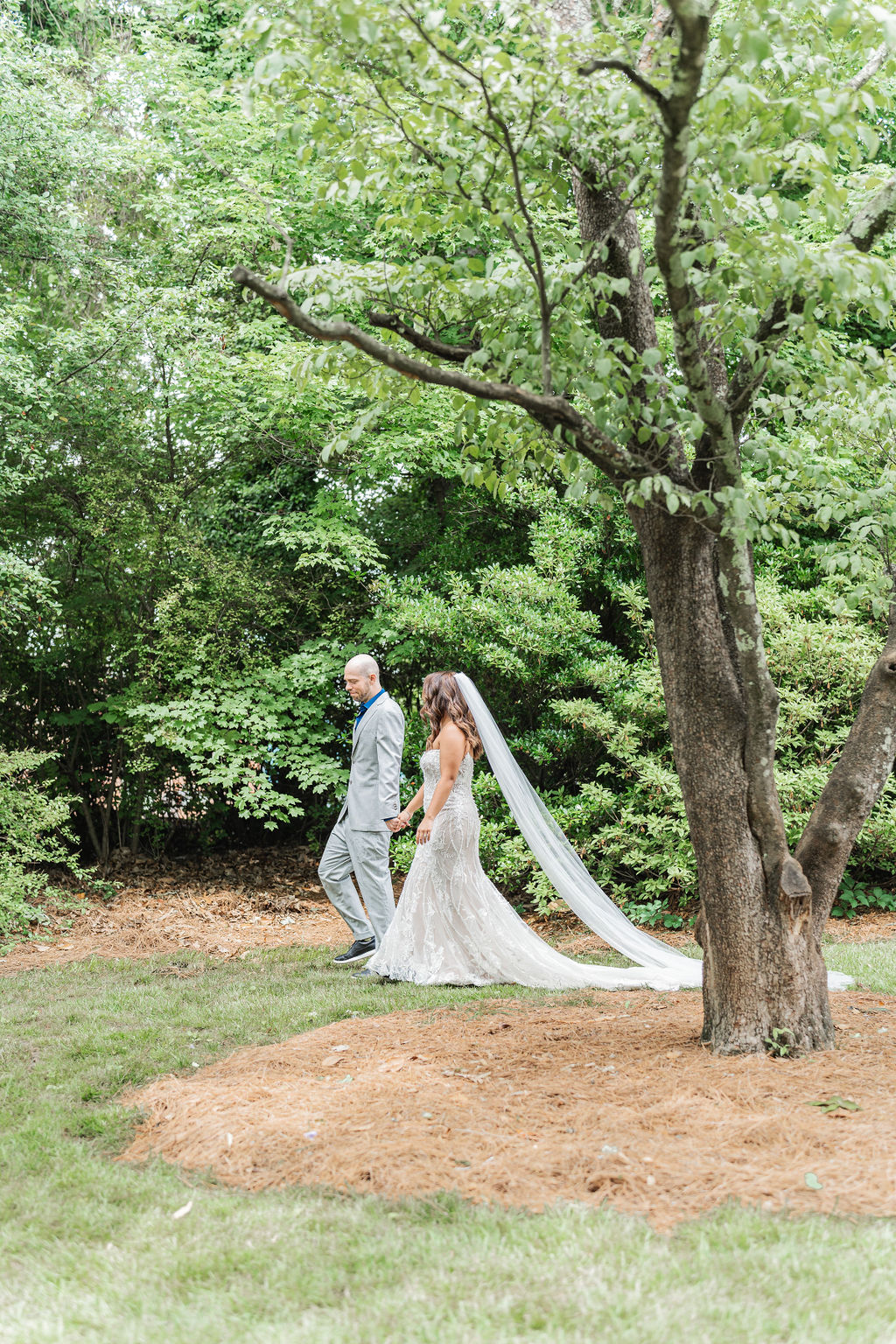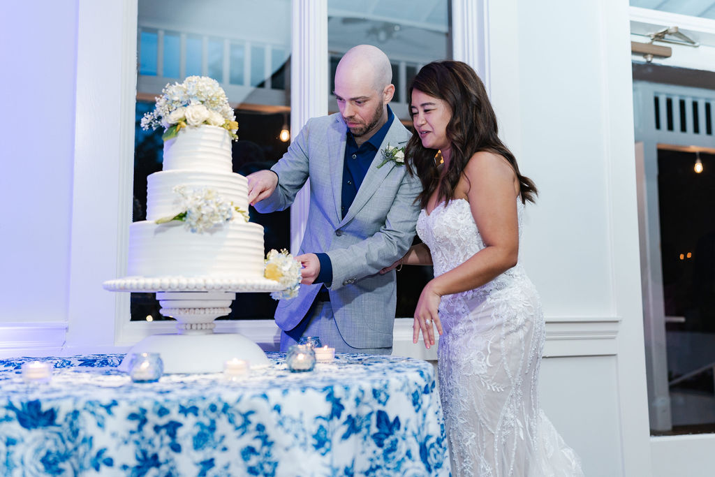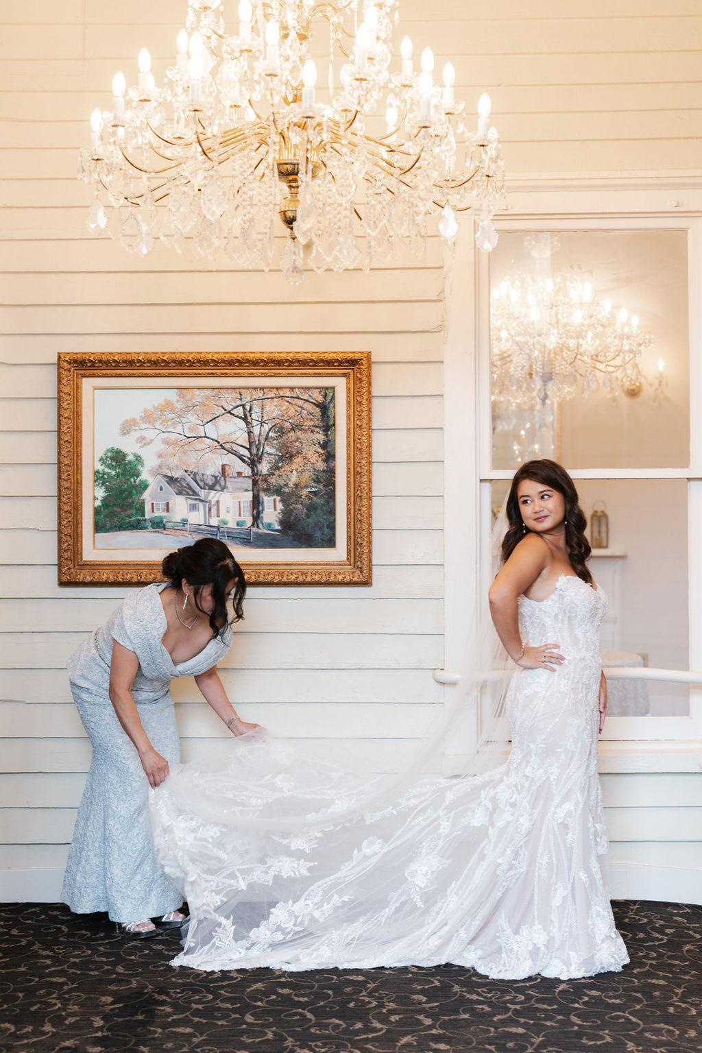 All the wedding guests loved the cocktail hour in the 1800s part of the house with overflow outside rocking on the front porch and on the terrace before the ballroom was opened for dinner. The guests always like to look at the old windows, wood trim, chandeliers, hardwood floors, high ceilings, and old fireplaces. They were super excited about the seated dinner everyone loved the chicken picatta. We loved the color scheme it was a perfect spring wedding. Wishing you many, many years of happiness together.
