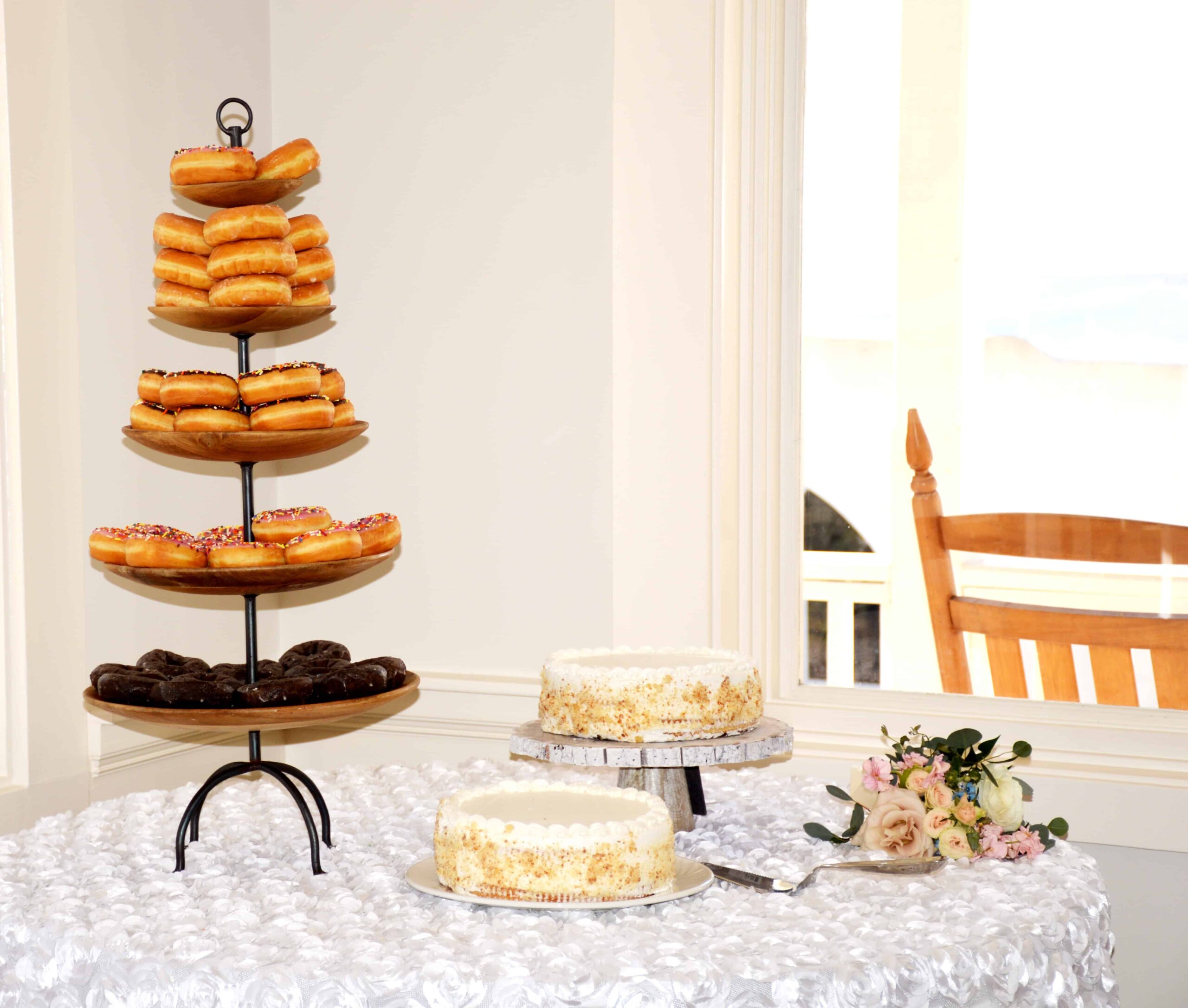 We loved their indoor ceremony which was perfect with the tall ceilings and beautiful Cross! Everyone enjoyed the appetizers in the old house and the buffet with lots of variety. Several of the guests told the chef it was the BEST wedding food they had ever had. We love what we do! Wishing the newlyweds many, many years of happiness!